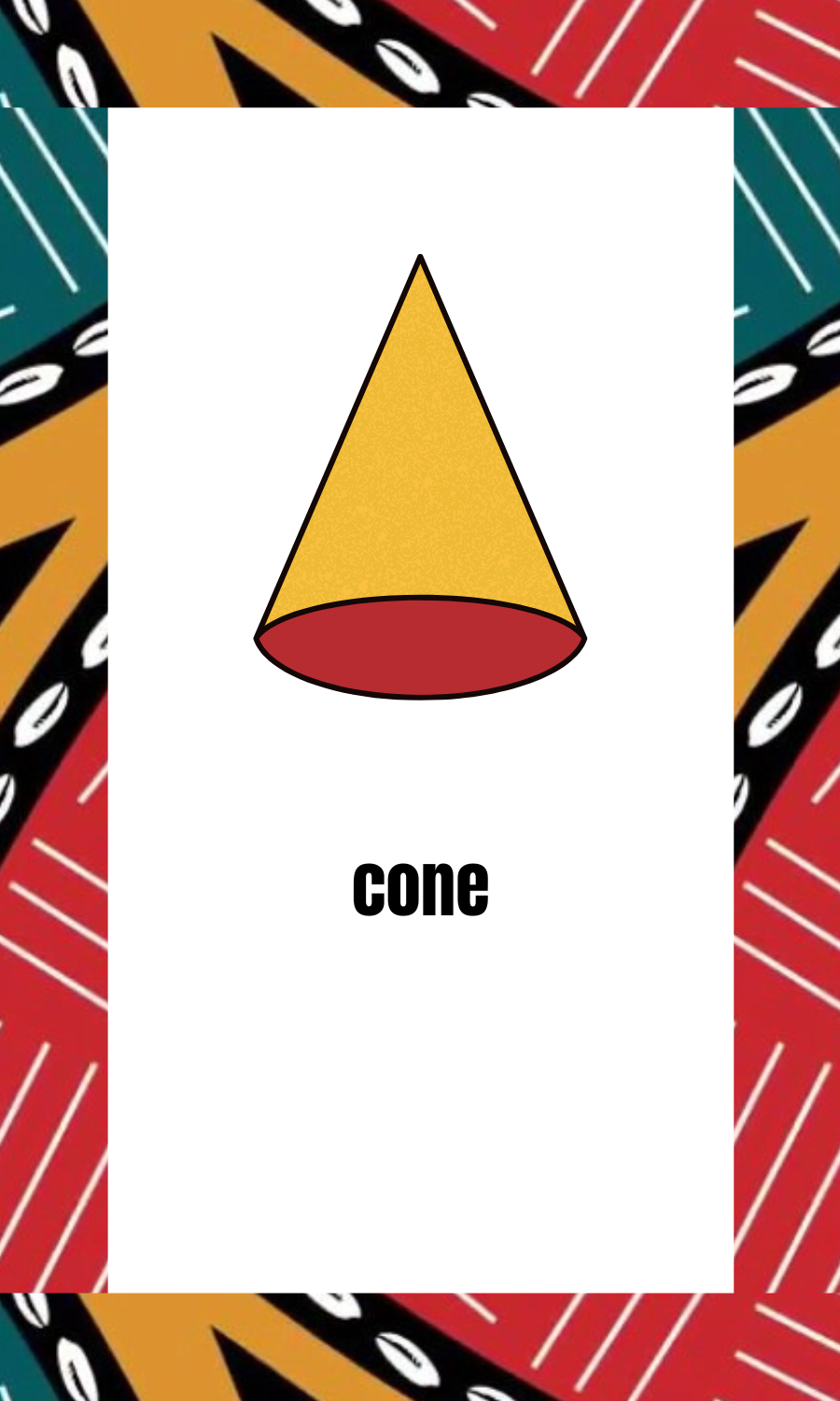 An elegant cone design in gold and red with traditional African border patterns.