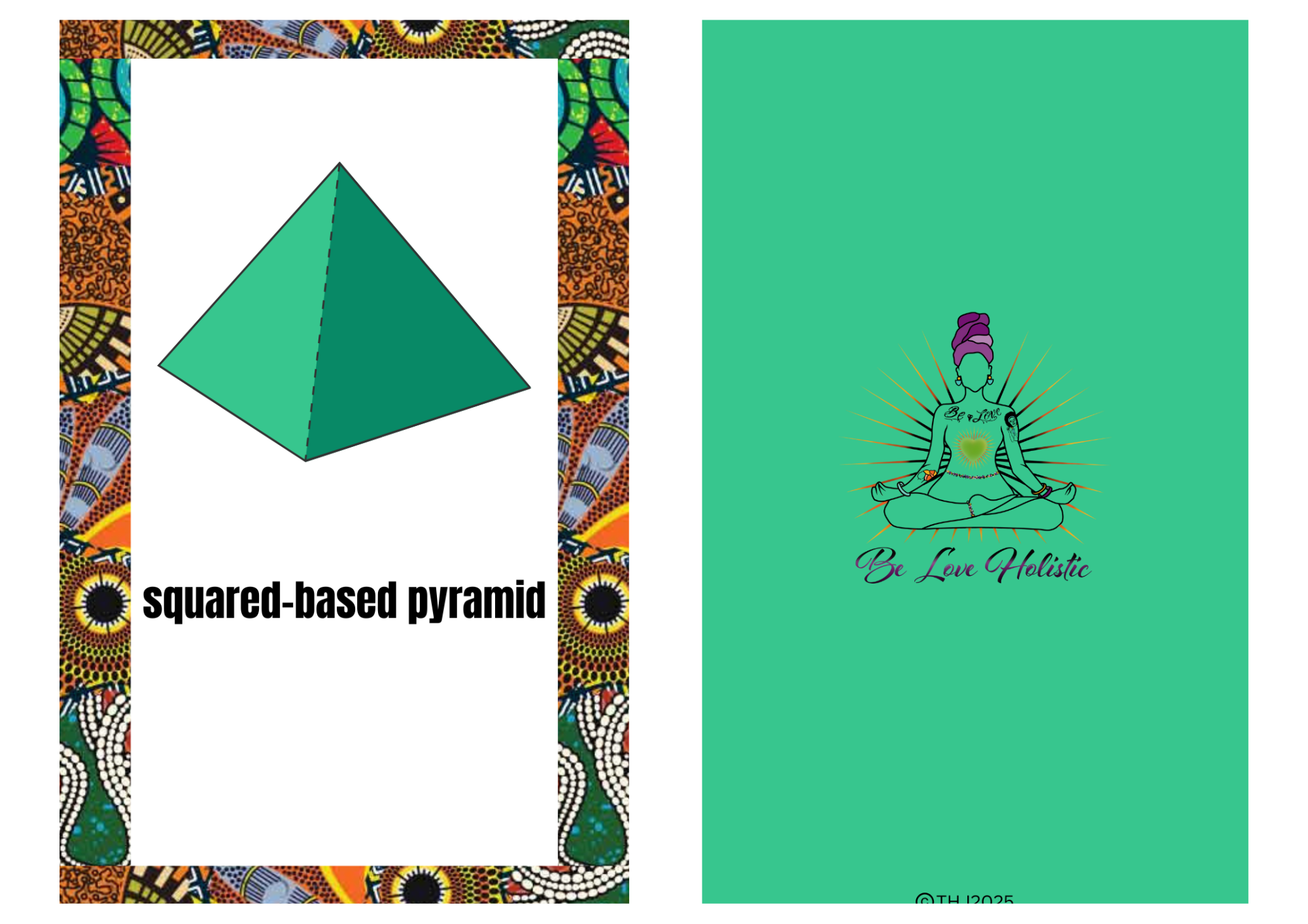 A classic pyramid shape in mint green with traditional African border designs.