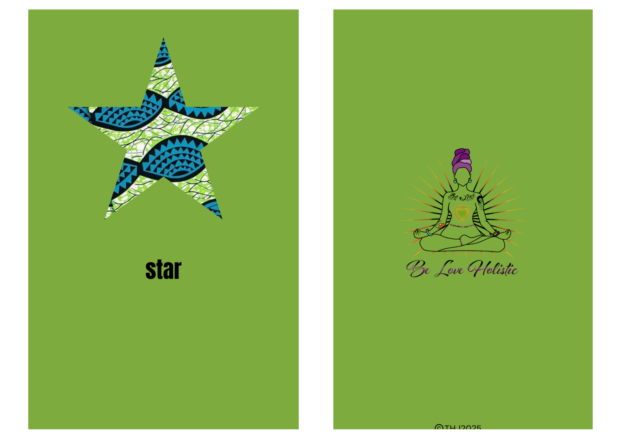 A five-pointed star featuring flowing patterns in turquoise and green