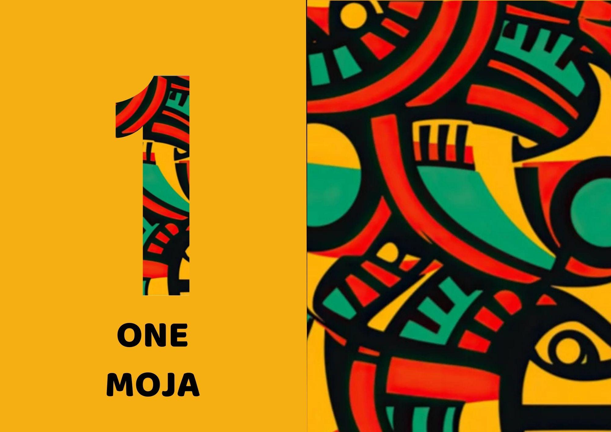 The image’s bold African-inspired design uses red, green, yellow, and black—colors symbolizing heritage, strength, prosperity, and identity. "Moja" is more than a number; it represents the foundation of learning, culture, and progress.